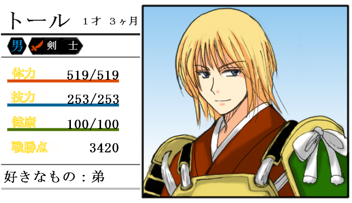 「俺の屍を越えてゆけ」風にトール兄さんステータス画面♪