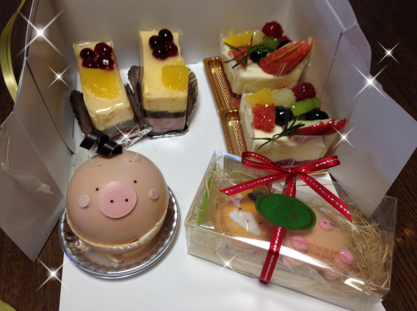 ぶたさんのケーキはチョコレートでできていて、